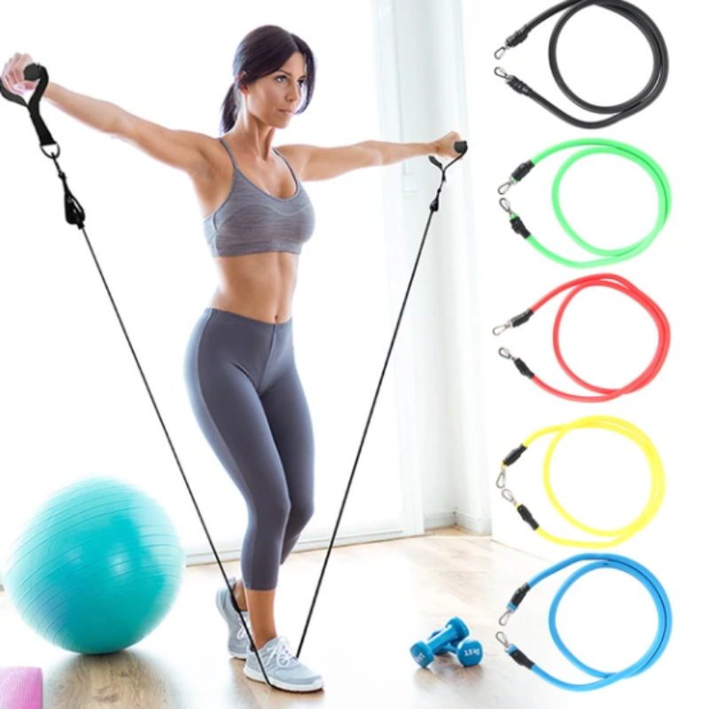 With 5 different levels of resistance, easily increase or reduce the weight needed for each exercise. Up to 100 lbs of resistance!